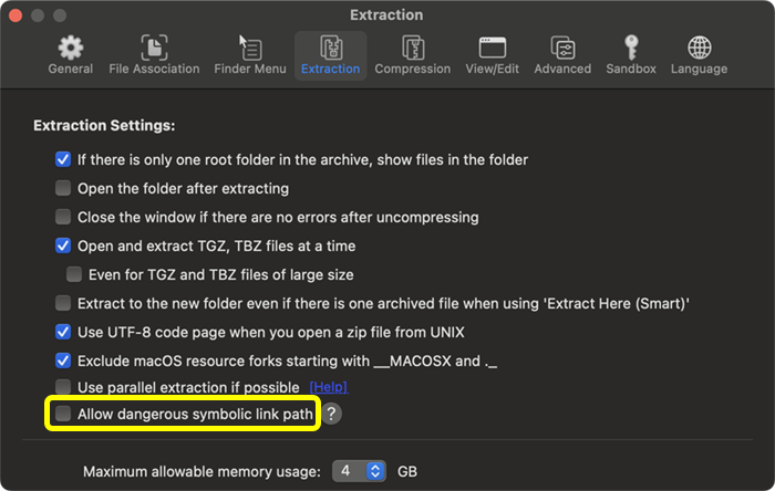 ⚠️ Caution for archives containing symbolic links